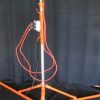 This mirror ball is great for that disco party where you have nowhere to hang a mirror ball. It includes a height adjustable stand, a 12″ diameter mirror ball, 2 pin spotlights, ball spinning motor, and a 50′ long triple-head extension cord (to plug in the spinning motor and both spotlights). You will need a standard 110v power supply to use this item.