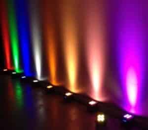 - IR remote control and wireless DMX receiver/transmitter so that a change to one simultaneously changes all to the same color/pattern